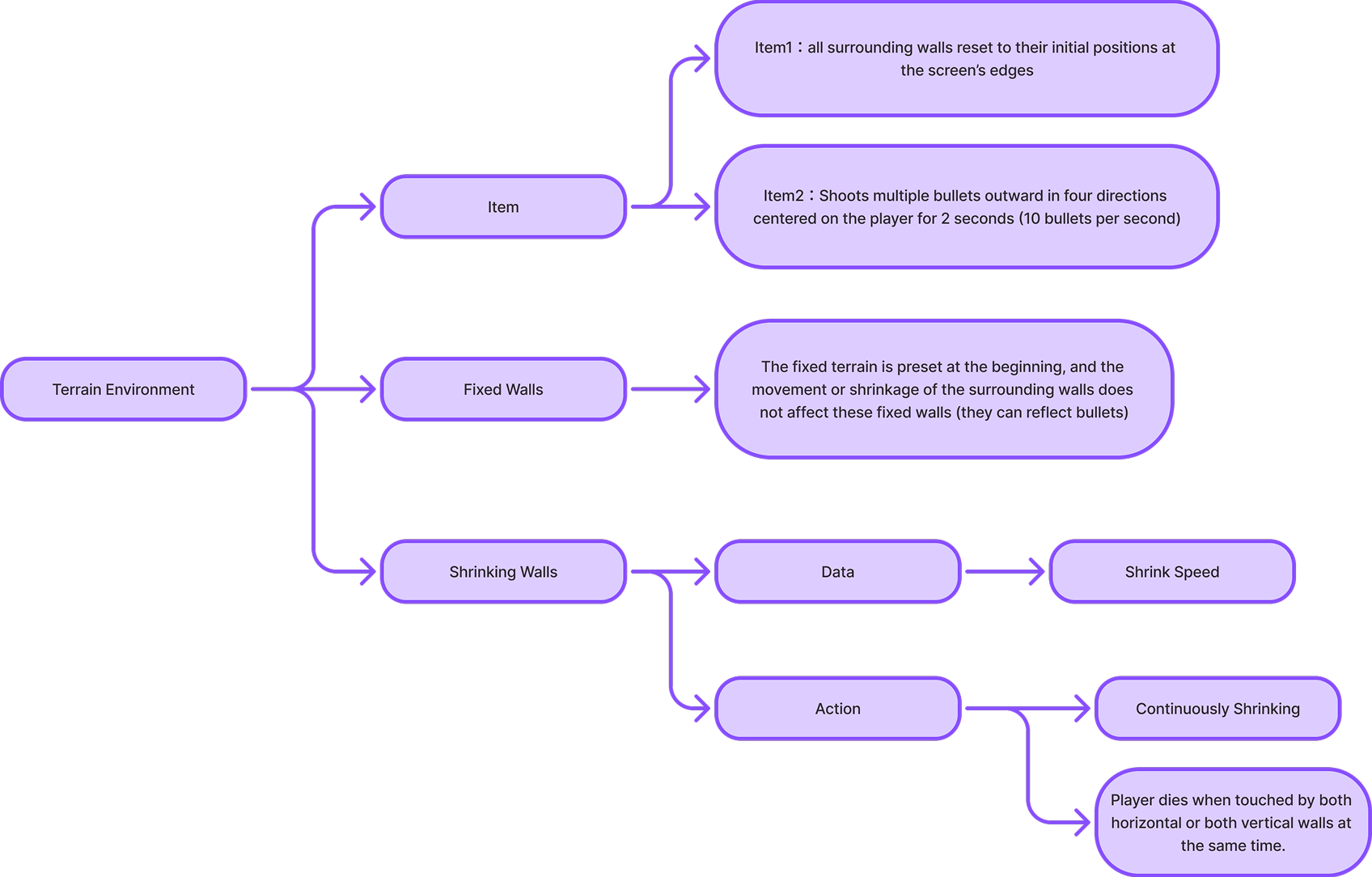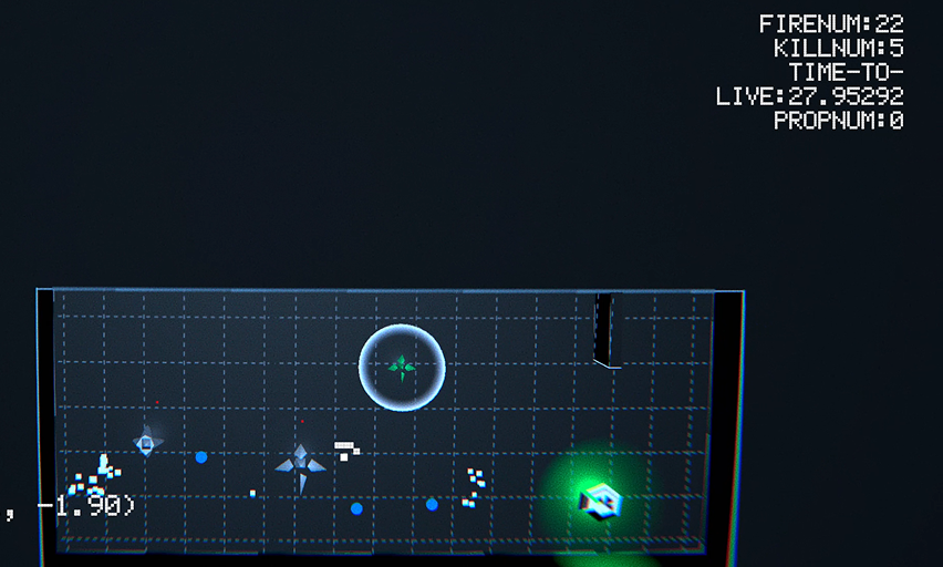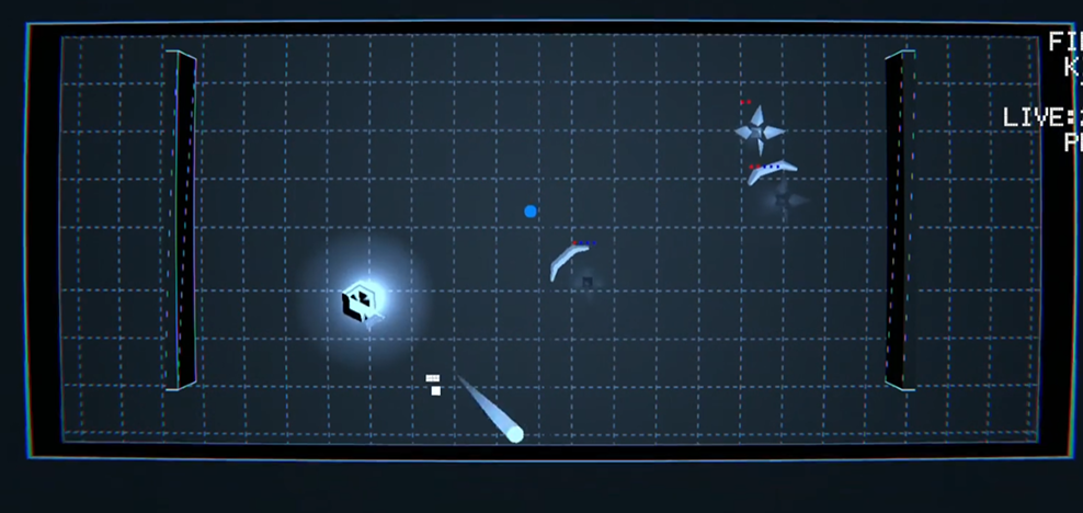 Stage2:The terrain in the scene, combined with the shrinking walls, allows for multiple ricochets and bounces.
