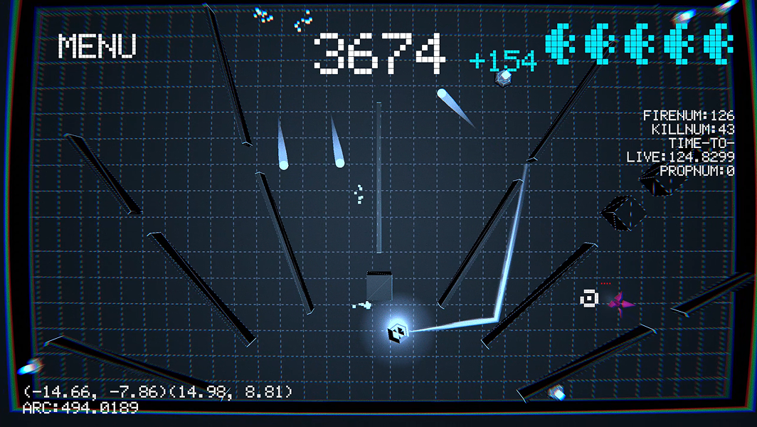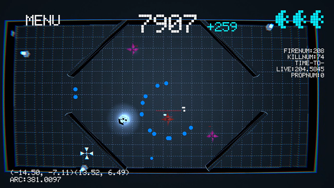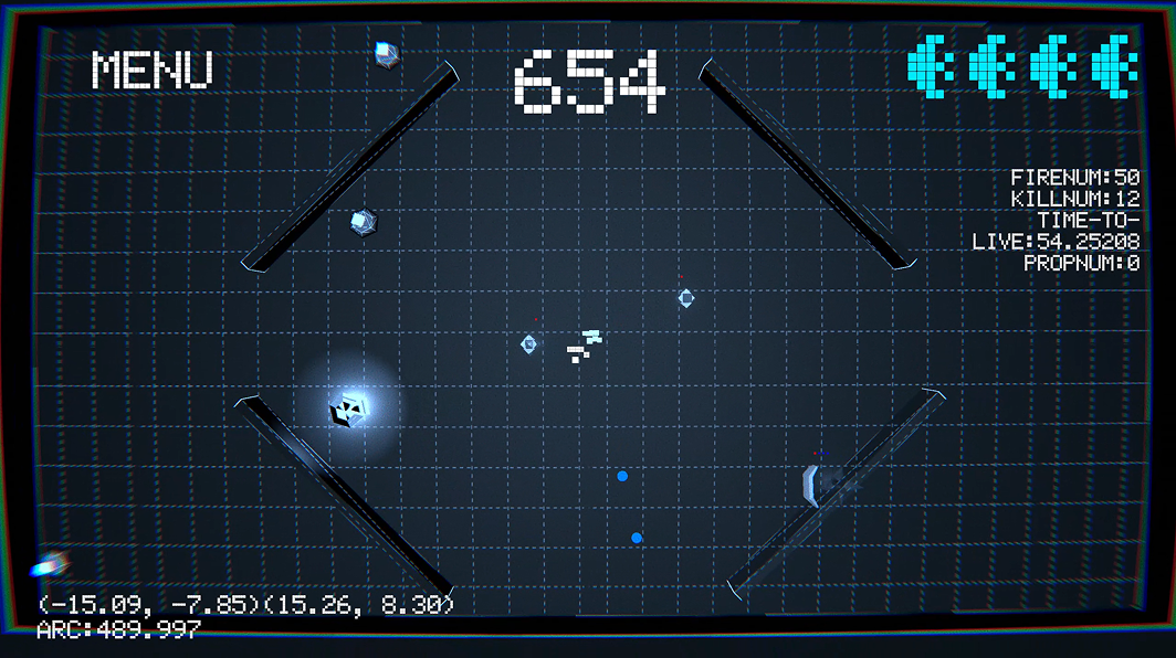 The walls around the player constantly shrink, and players can push the walls in various ways to gain survival space. At the same time, they must clear the enemies in the scene and avoid the bullet hell they fire.