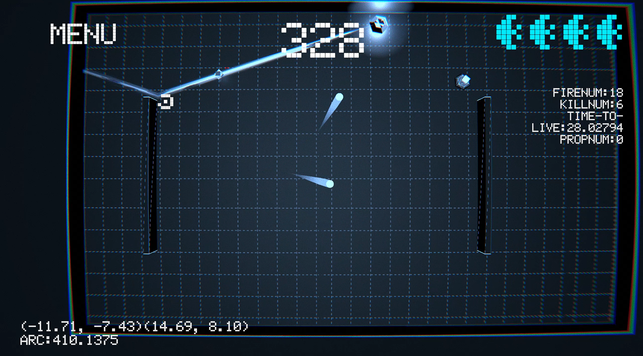 Helps players use the ricochet mechanic to hit enemies and push walls.