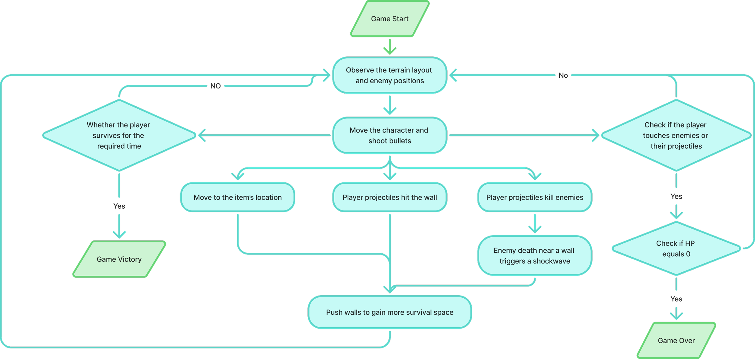 Our team started with the concept of limited and unlimited and aimed to create a game that involves the mutual conversion of time and space. Therefore, we adopted the representation of gradually shrinking space as time passes.